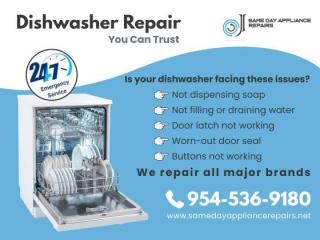 Call 954-536-9180 today or visit www.samedayappliancerepairs.net to schedule your dishwasher repair service now!